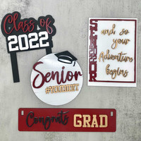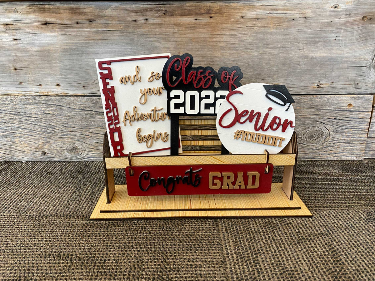 If you are celebrating a graduate this makes a perfect centerpiece for your celebrations. Will come with the current graduating year just leave a note to tell us what your school colors are. Perfect for the wagon, crate or raised shelf containers.